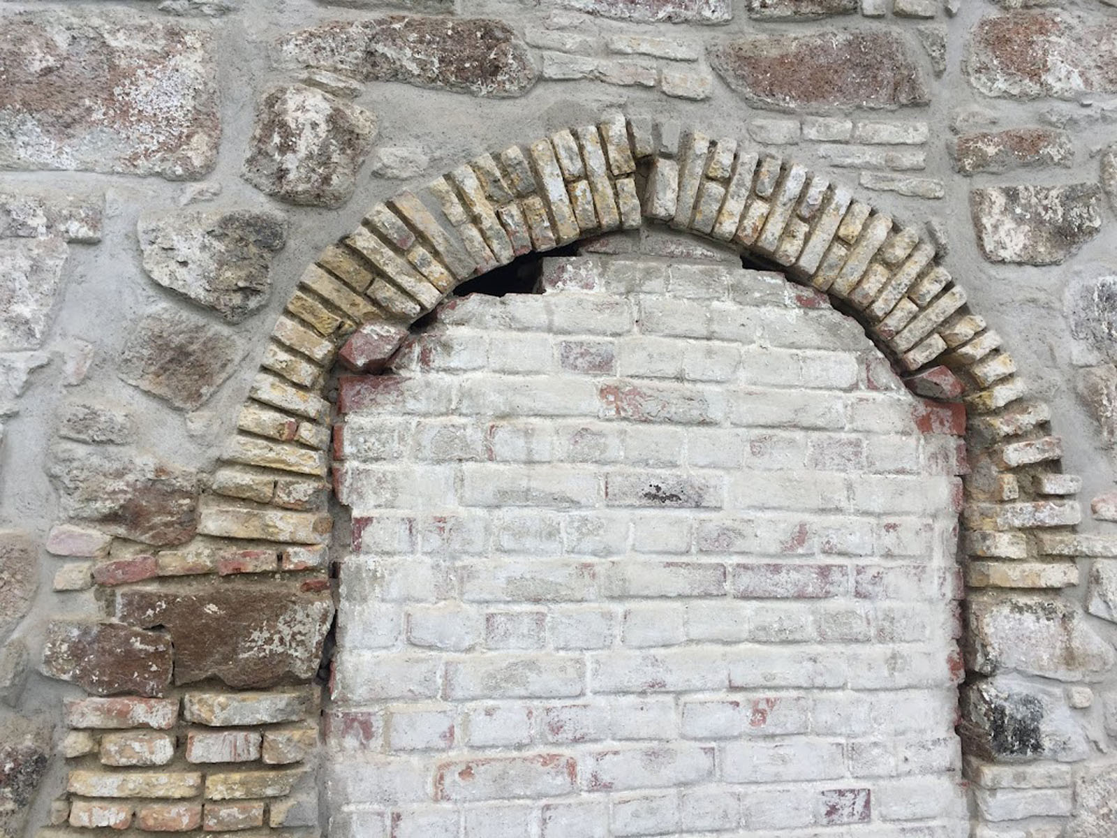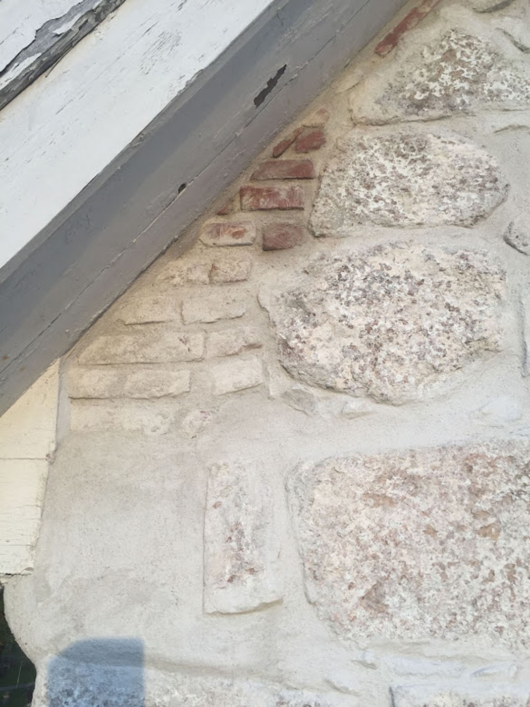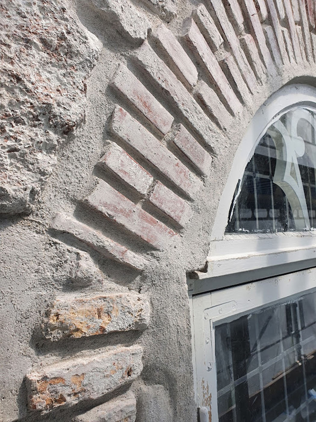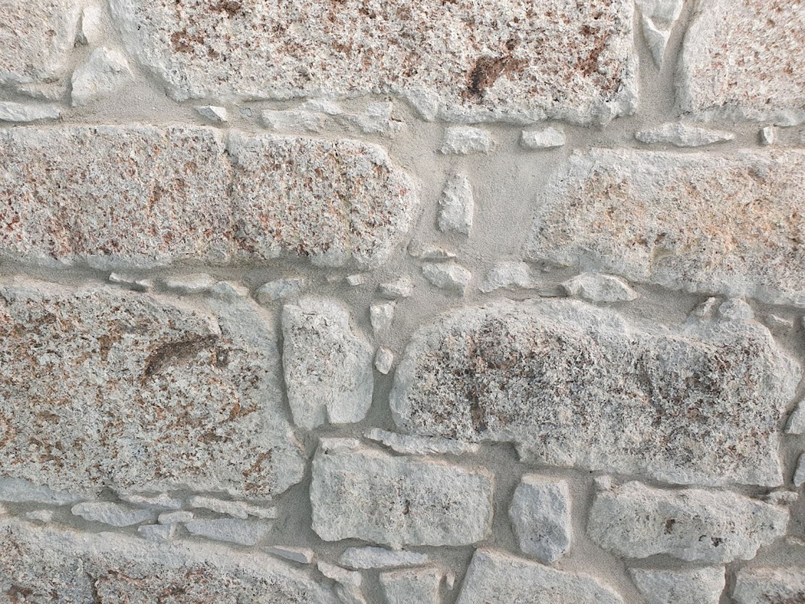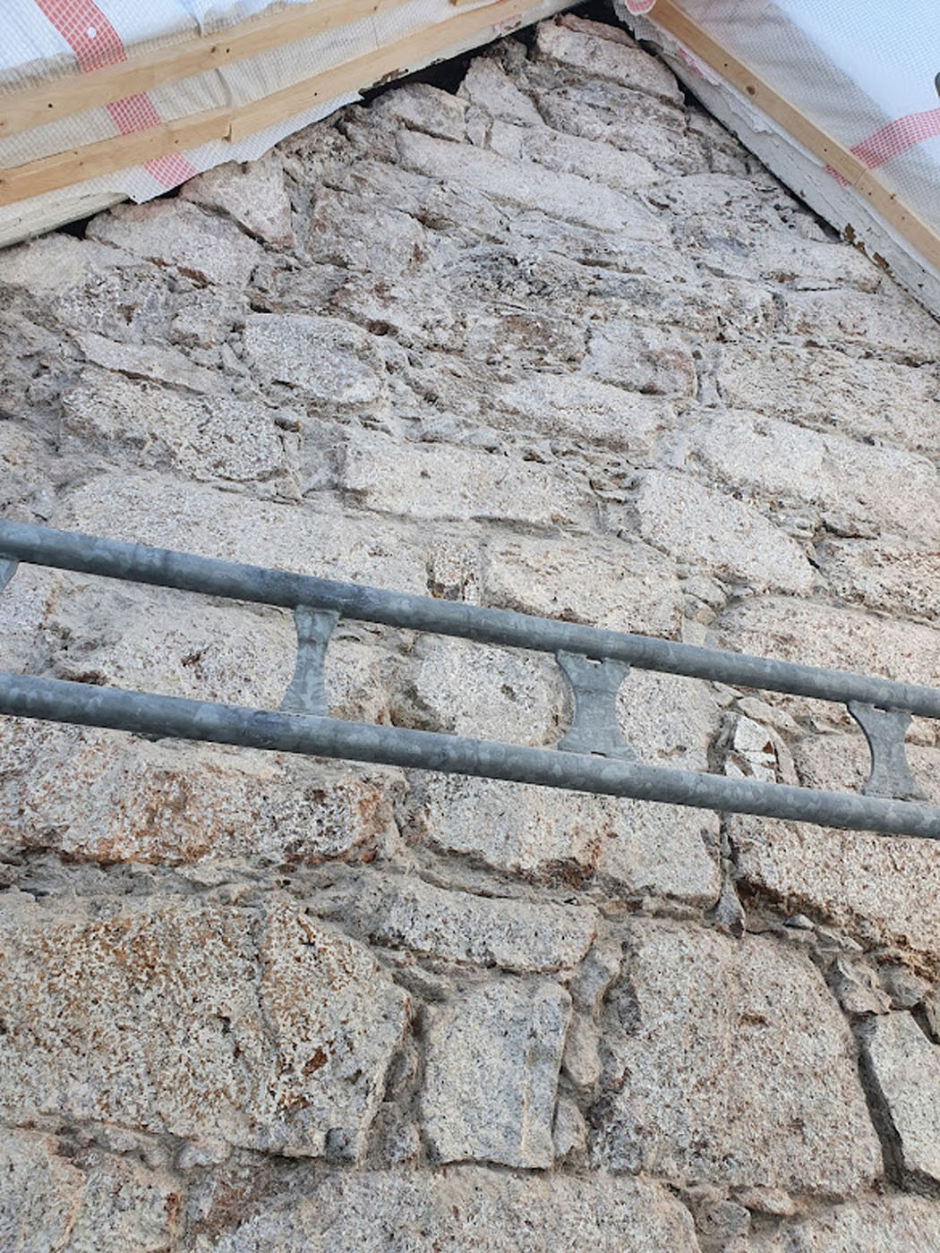 Utbedring av fasader. Nedmeisling av all tidligere puss. Uthugging av all mørtel i fuger og re fuging.