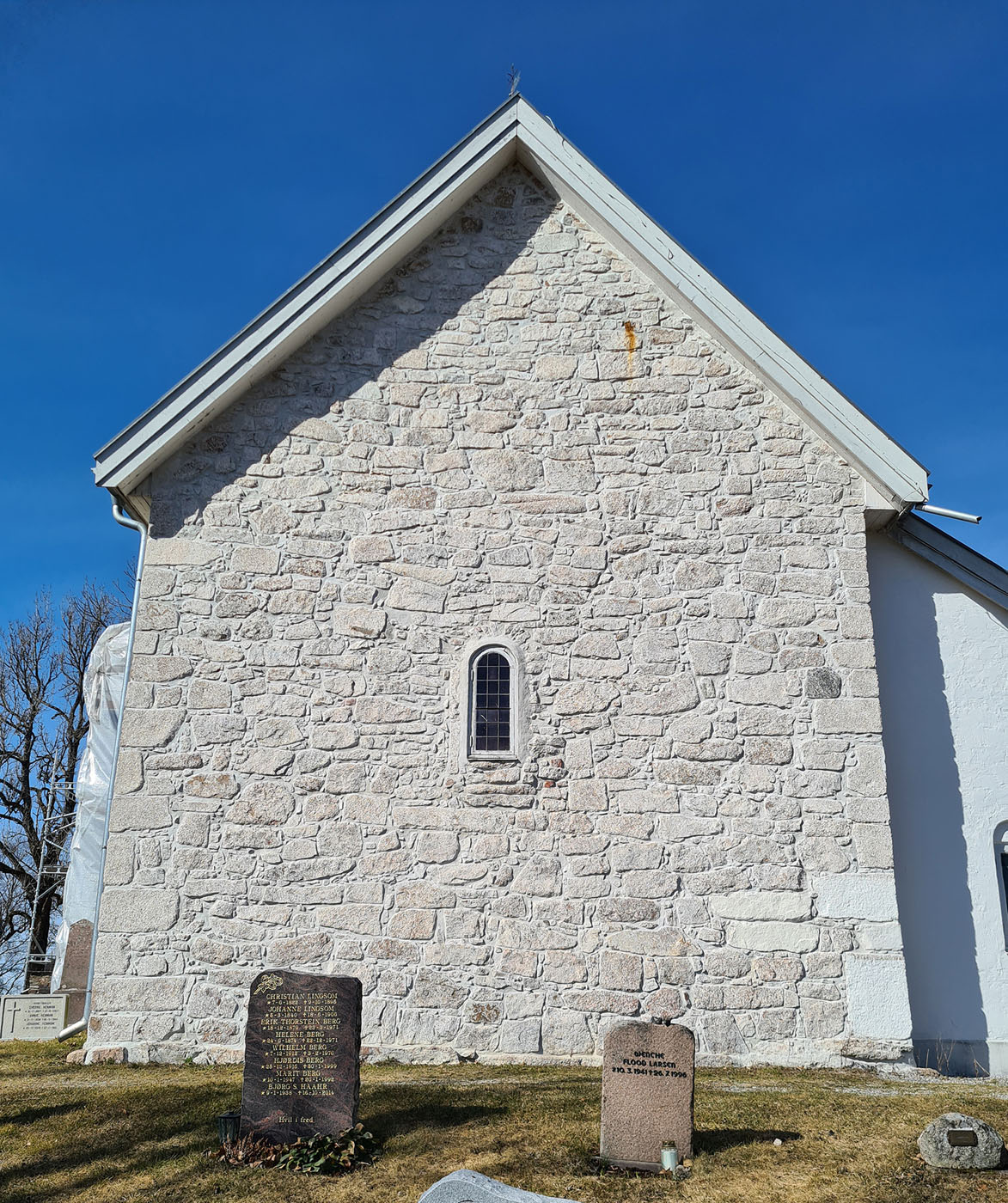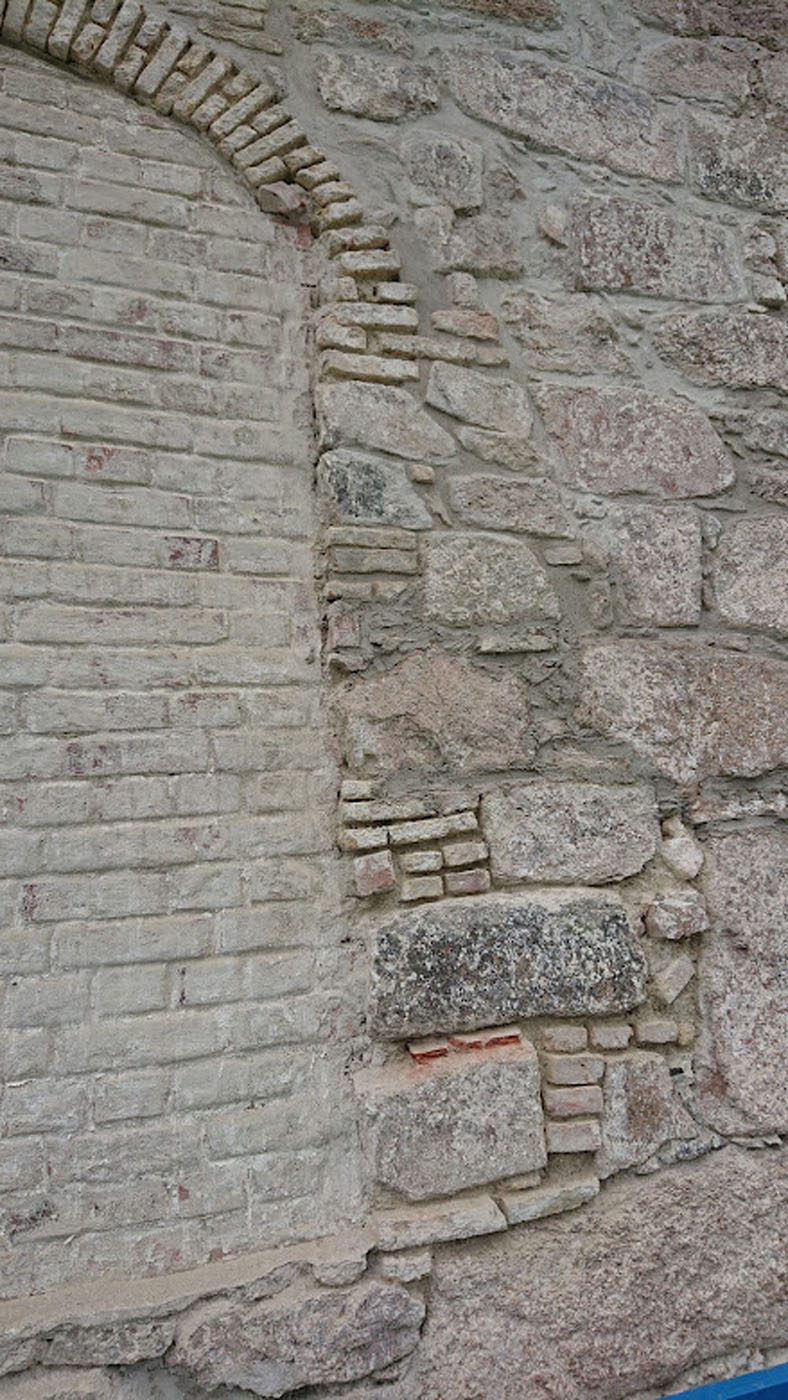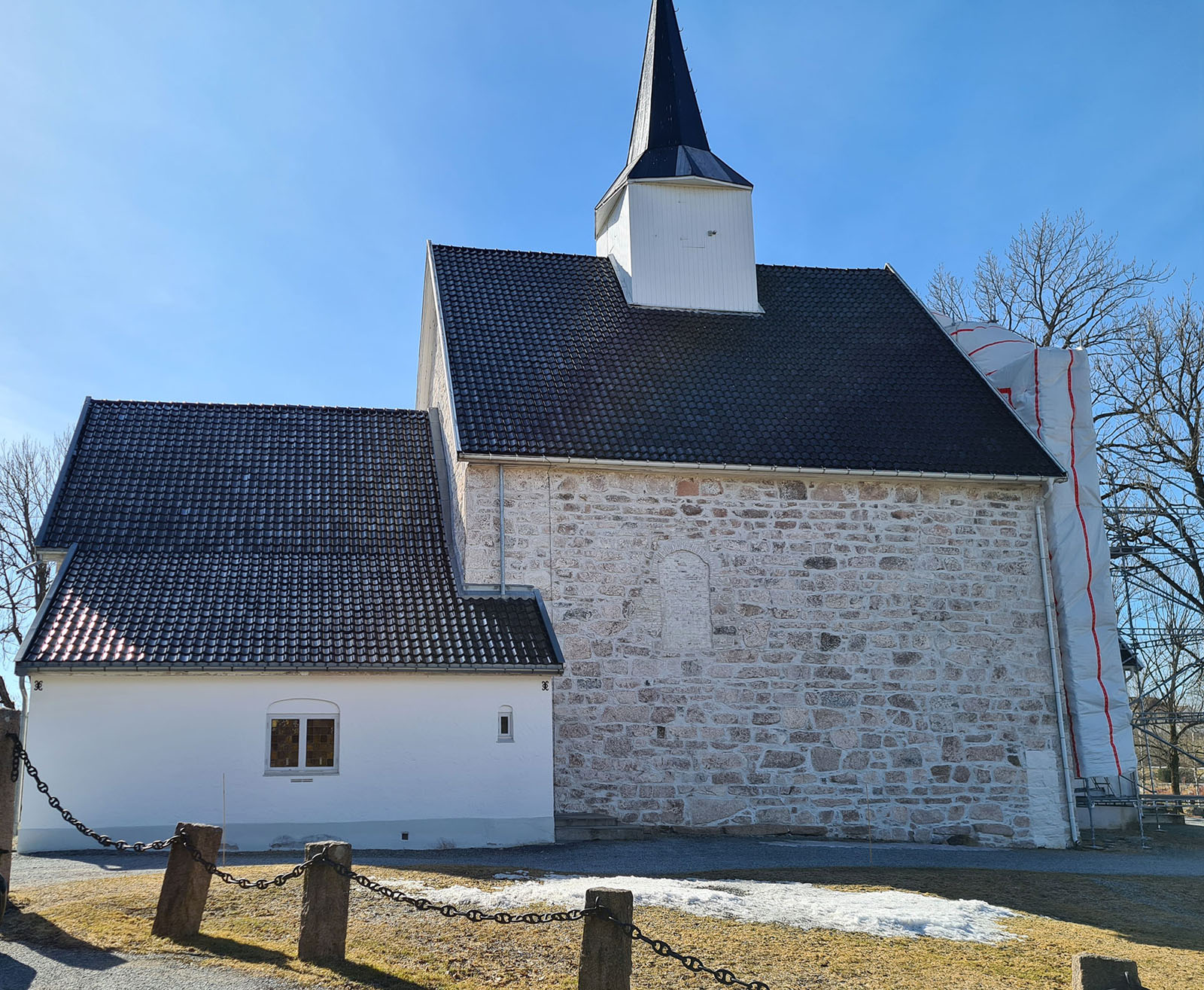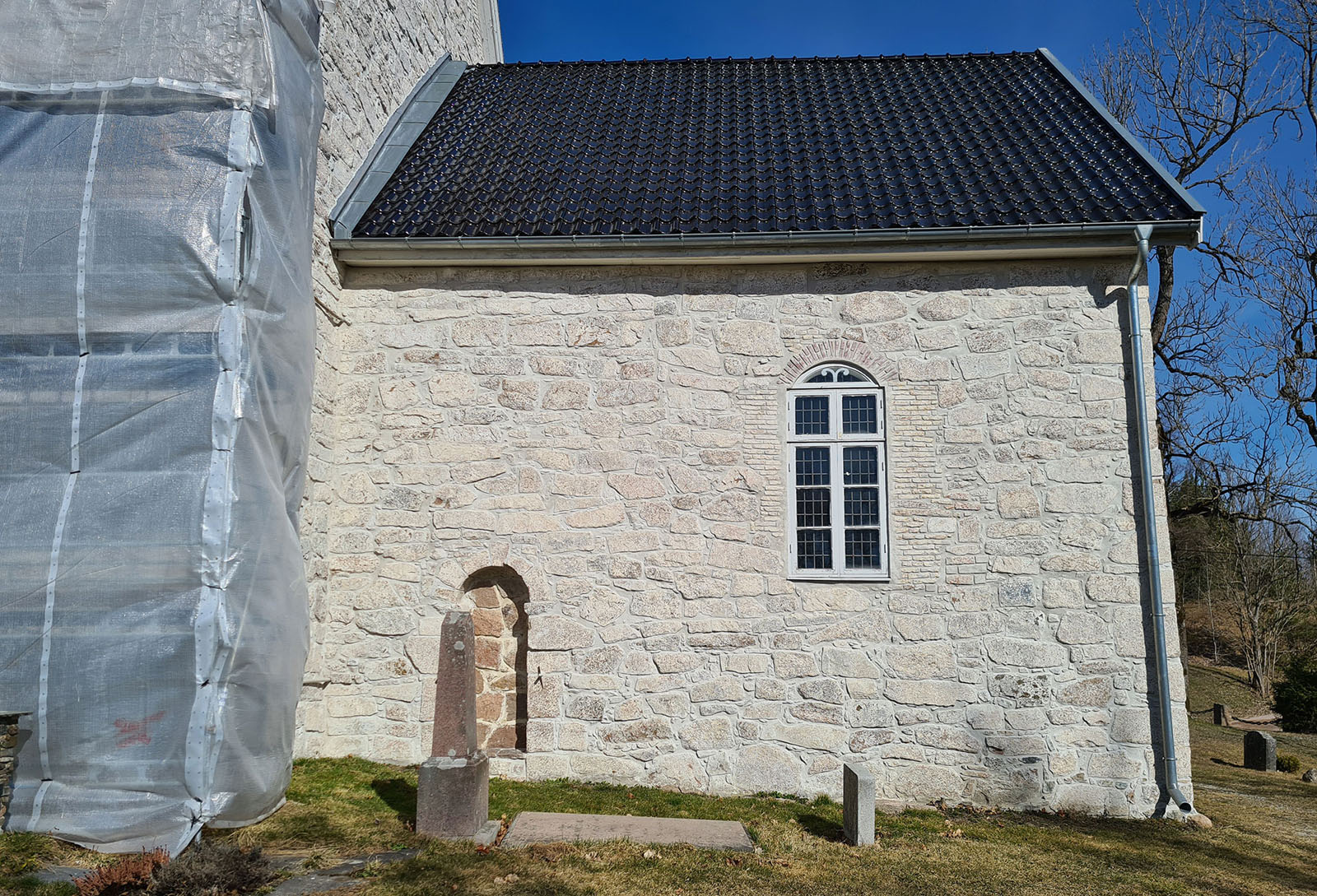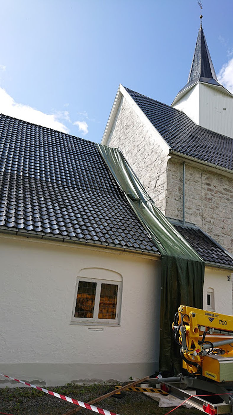 Utbedring av fasader. Nedmeisling av all tidligere puss. Uthugging av all mørtel i fuger og re fuging.